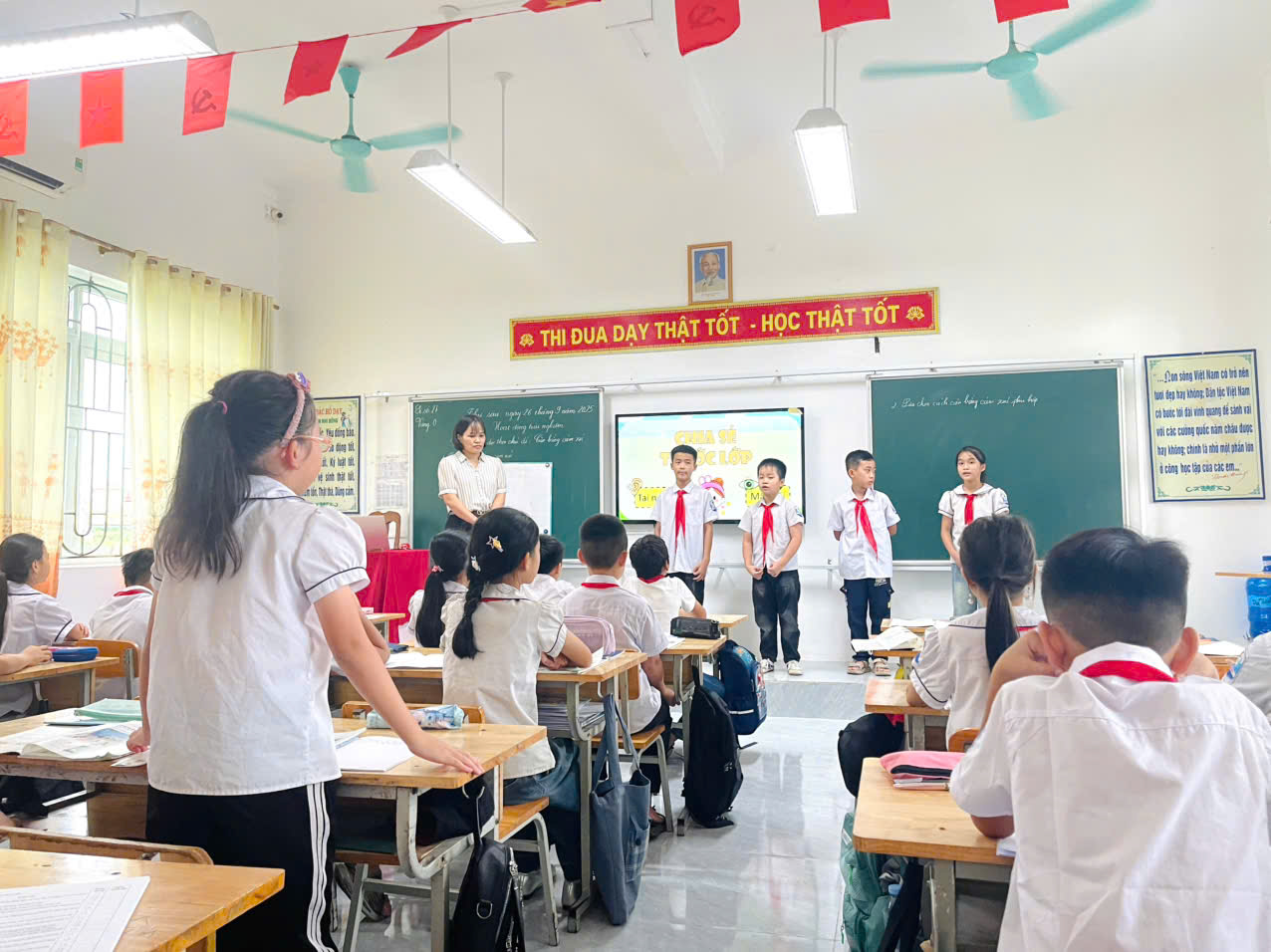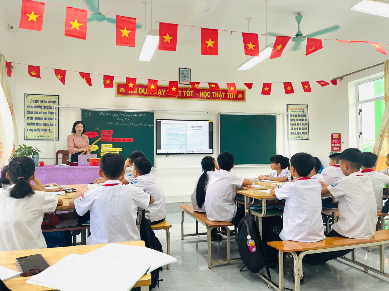 Qua các tiết dự giờ, thăm lớp trong nhà trường, có thể nhận thấy việc đổi mới phương pháp dạy học, gắn với ứng dụng công nghệ thông tin, chuyển đổi số và công cụ trí tuệ nhân tạo (AI) đã đem lại nhiều hiệu quả thiết thực. Giáo viên đã chủ động áp dụng các phương pháp dạy học tích cực như thảo luận nhóm, trò chơi học tập, giải quyết vấn đề, qua đó phát huy tính chủ động, sáng tạo và tinh thần hợp tác của học sinh. Việc ứng dụng công nghệ thông tin và AI trong soạn giảng, trình chiếu, thiết kế bài tập trực tuyến, đánh giá nhanh kết quả học tập đã giúp giờ học trở nên sinh động, trực quan, dễ hiểu, đồng thời tăng cường sự tương tác giữa giáo viên và học sinh. Các công cụ số, học liệu điện tử, phần mềm hỗ trợ học tập được khai thác hiệu quả, tạo môi trường học tập hiện đại, phù hợp với xu thế chuyển đổi số trong giáo dục.